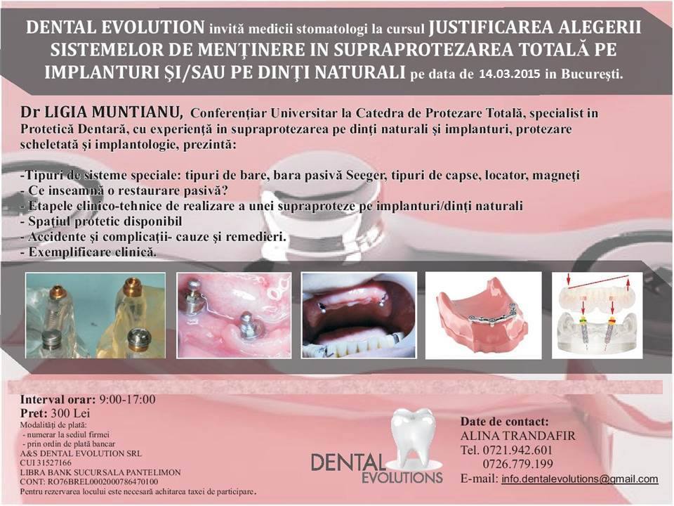 Dr. LIGIA MUNTEANU, Conferentiar Universitar la Catedra de Protezare Totala, specialist in Protetica Dentara, cu experiente in supraprotezarea pe dinti naturali si implanturi, protezare scheletata si implantologie, prezinta:
